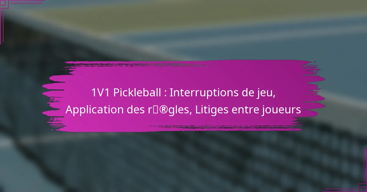 Les interruptions de jeu courantes dans le pickleball en 1 contre 1 incluent des pauses liées aux blessures, des distractions extérieures, des dysfonctionnements d’équipement, des conditions météorologiques et des pauses initiées par les joueurs. Comprendre comment gérer ces interruptions est crucial pour maintenir le flux du jeu et garantir un jeu équitable.